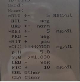 소변검사를 했는데, 포도당 (GLU) 2000mg가 나왔어요.