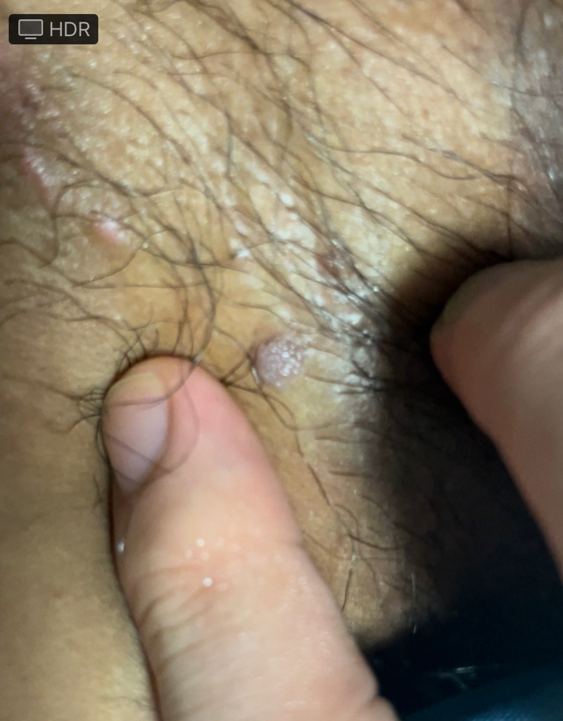 병변 모양을 보았을 때 곤지름의 가능성을 배제할 수는 없겠으며, 이는 이전 성경험 등의 시기등도 주용하게 작용하겠습니다. 정확한 진료를 위해 가까운 비뇨의학과에 방문해 보실 것을 권유드립니다.