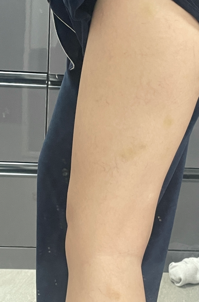 다리랑 팔 쪽에 이유 없는 멍이 생겼고, 붉은 반점도 생겼어요.