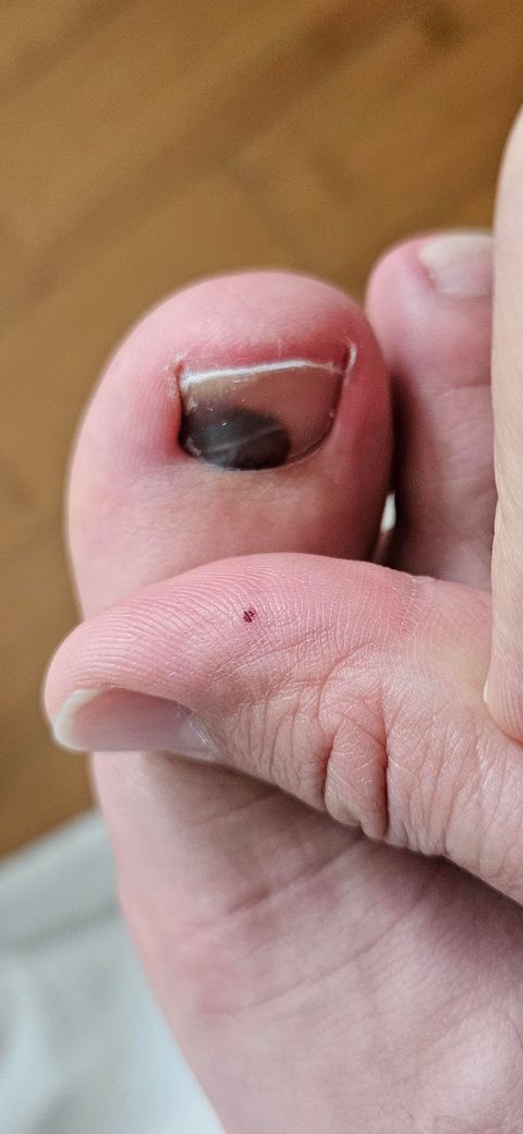 발은 조갑혈종이 생긴 것 같네요 정형외과 진료를 받아보세요