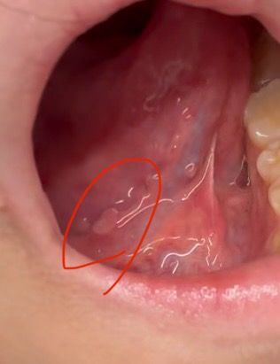 3일 전 친구랑 마라탕 시켜 먹었는데 그게 너무 자극적이였나봐요 다음날 밥먹을 때 혀 안쪽이 조금씩 아프긴 시작하더니 이제는 밥 먹을 때 마다 통증이 느껴지고 먹을 때 마다 너무 아파서 한 입 먹고 물마시고 한 입 먹고 물마시고 .. 면봉으로 건들였을때 빨간 동그라미로 표시한 부분이 진짜 아파요 구내염인가요..? 알보칠 발라도 괜찮을까요?