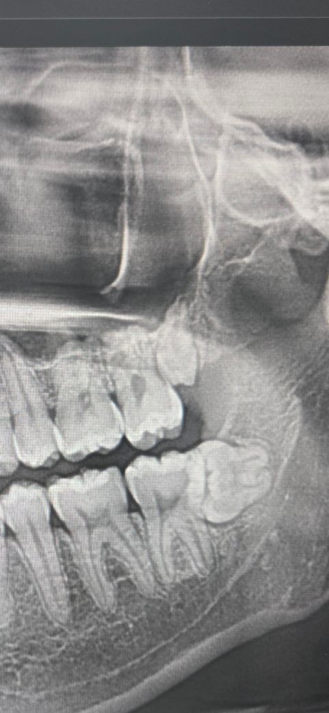 왼쪽 위의 사랑니가 왜소치 형태로 작게 발생이 된 것으로 보입니다. 맹출되지 않았다면 크게 문제가 되지 않기 때문에 그냥 사용해도 됩니다.