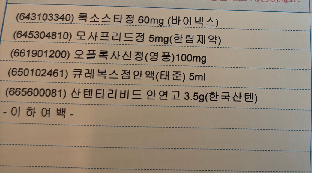 처방받으신 약들 중 오플록사신정이 항생제이지만, 피임약의 약효에 특별한 영향을 주기는 어렵습니다