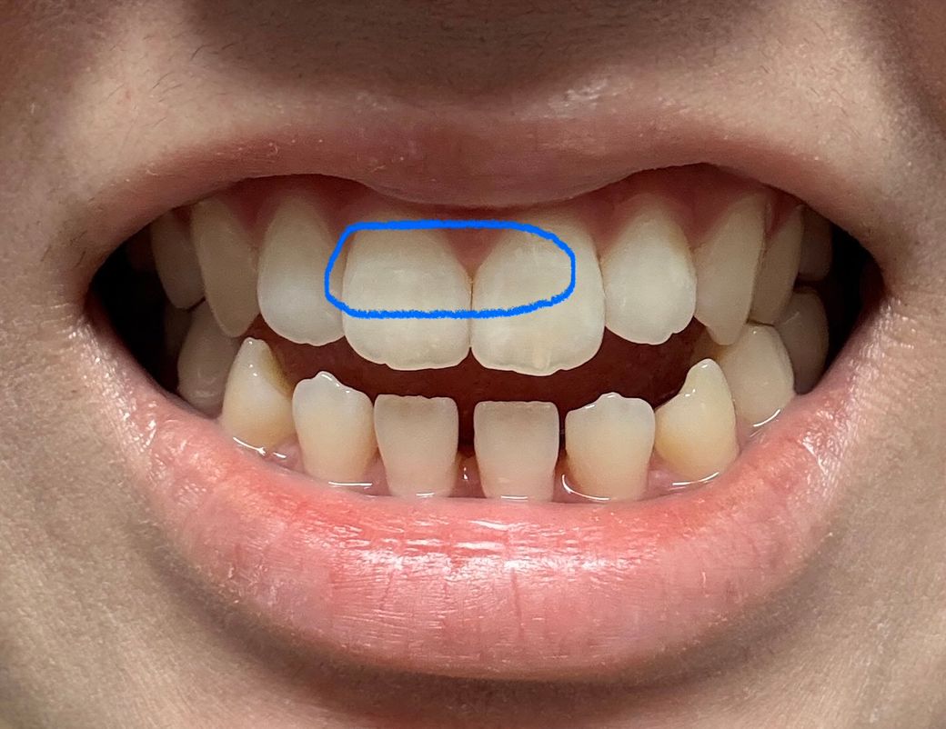 우연히 양치를 하나 봤는데 위 앞니양쪽 에 가로 금이 있더라구요 ㅠㅠ 특히 오른쪽이 좀더 진하구요(사진상은 반대에요) 그냥 외관상 봤을때는 첫번째 사진 파란 네모안에 처럼 좀 금이 살짝 보이는정도고 각도에 따라서 두번째 사진에 보라색 네모친 부분처럼 그림자처럼 보이기도해요 근데 확실히 플래쉬를 비추면 세번째 사진 초록색 네모부분안에 금이 훨씬 잘보여요 ㅠㅠ 혹시나해서 안쪽도 보니 금이 살짝있는데 바깥 금이랑은 같은 위치인지는 모르겠는데 네번째 사진상으로 안나와서 대충 그려서 올립니다! 검은 색 선처럼 약간 가로금이있어요 그런데 제가 원래부터 앞니에 세로로 된 실금은 좀 있었는데 가로로 된 실금은 처음봤어요 ㅠㅠ 그동안 앞니에 큰 충격은 따로 없었고 있어봤자 양치하다 칫솔에 앞니 부딪히는정도가 끝이었어요 몇주전 한번 금있는 치아가 갑자기 시리거나 물 닿았을때 시린건 한번씩 있었는데 그 뒤로는 불편한 건 없었고 금이 만져지거나 하지도않아요 그리고 무엇보다 이번년도 4월에 정기검진했는데 엑스레이도 촬영했는데 이때도 치아 금은 보이지않는다 그러셨거든요 ㅠㅠ 혹시몰라 마지막사진 첨부합니다 이때 금이 있었는지는 모르겠으나 이상없다하셨는데 외상이 없는데 갑자기 금이 생길수 있나요…? 제가 근데 개방교합이라 윗니들이 간격이 좁아서 살짝 튀어나오고 뒤틀어진건 있습니다 ㅠㅠ 일단 사진 보시기에 치료가 필요한 수준인가요..?😭 임플란트 해야할까봐 무서워요 ㅠㅠ 꼭 답변 부탁드릴게요..