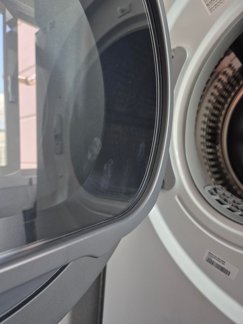 건조기 도어 유리 내부 손자국은 소비자가 만들 수 없는 위치라 초기불량 가능성이 큽니다.