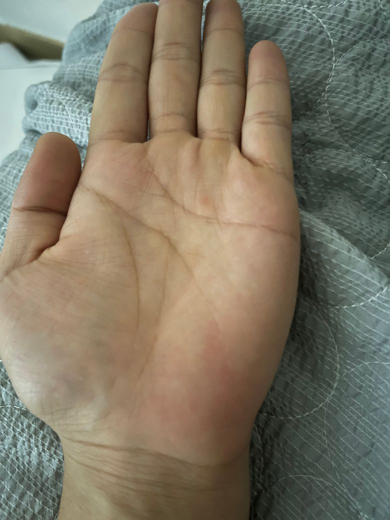 근육튐 왼쪽 소지구쪽 근위축이 발생되었고