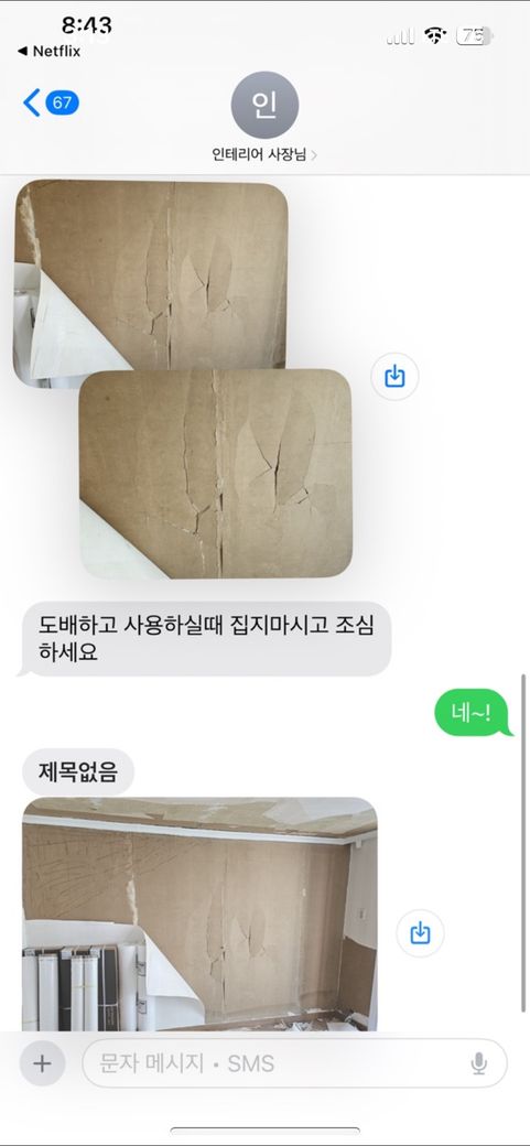 7/22 잔금 치루고 현재 도배 작업 진행 중인데 첫날 아래와 같은 하자를 발견했습니다