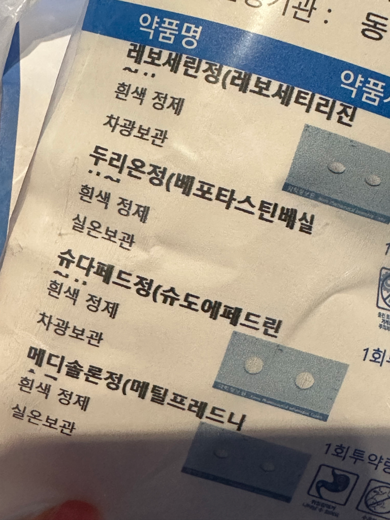 처방받으신 비염약은 식후에 복용하시길 바랍니다.