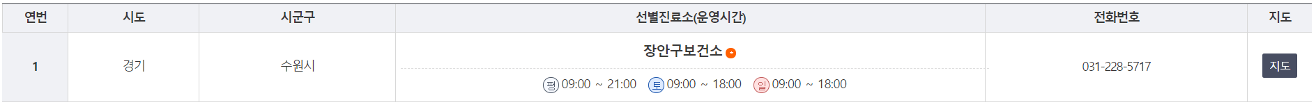 장안구보건소 외에 다른 곳은 확인해보시려면,