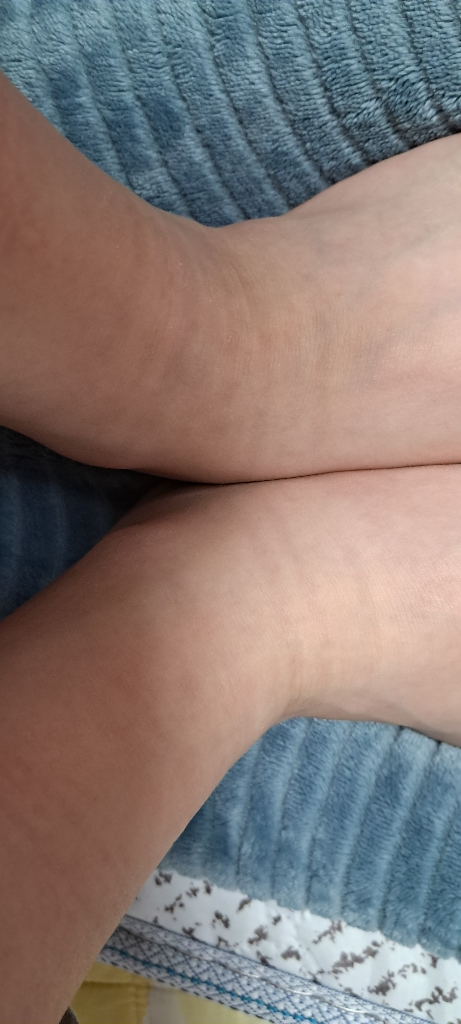 발등 쪽에 양말 자국 난 쪽은 좀 가렵길래 로션 발라 줬더니 낫더라구요