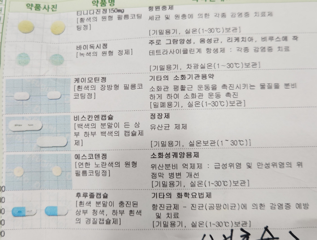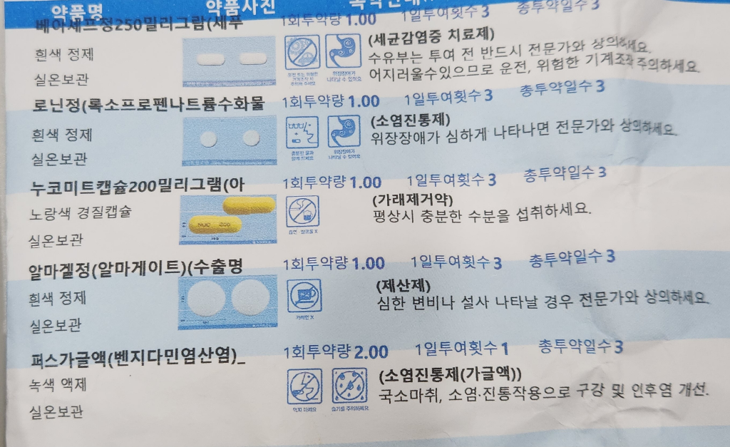 아래가 산부인과약, 위에가 목귀 통증 감기약인 것 같습니다