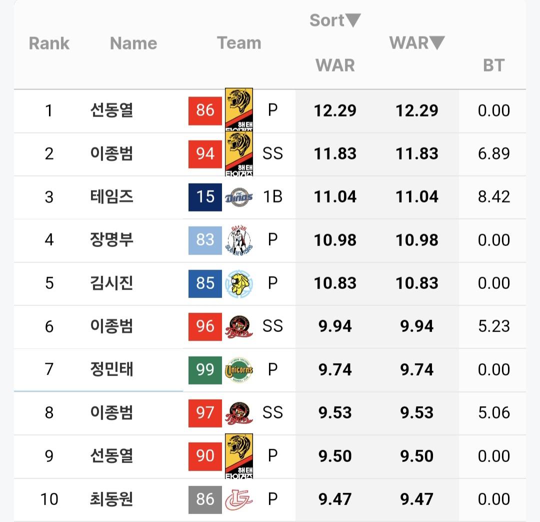 프로야구에서 WAR은 대체선수 대비 승수인 지표로 WAR 6인 선수는 대체선수 대비 6승을 올린 선수입니다. 그렇다면 KBO리그에서 역대 한시즌 최고 WAR을 기록한 선수는 누구인가요? 감사합니다.