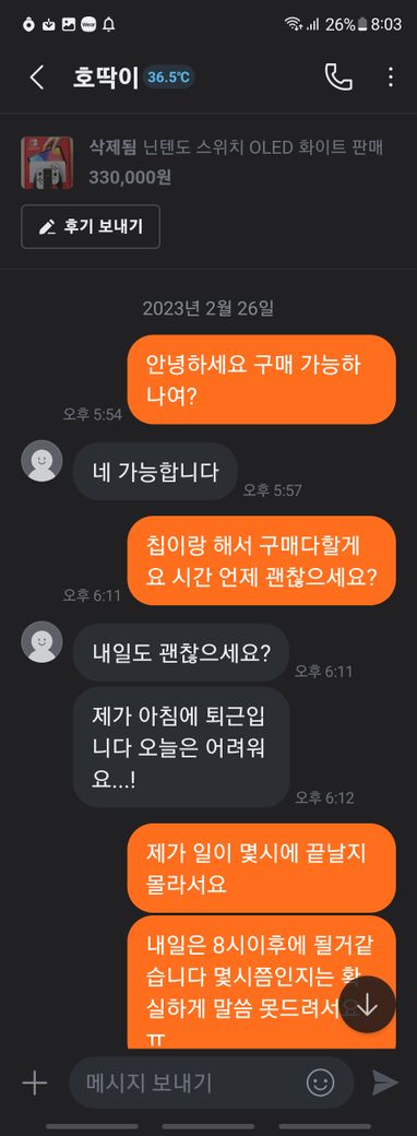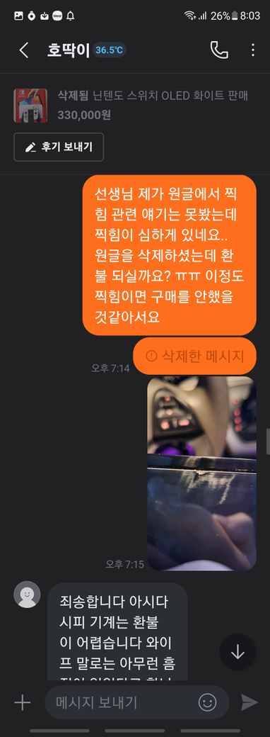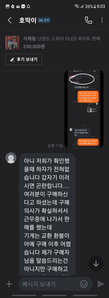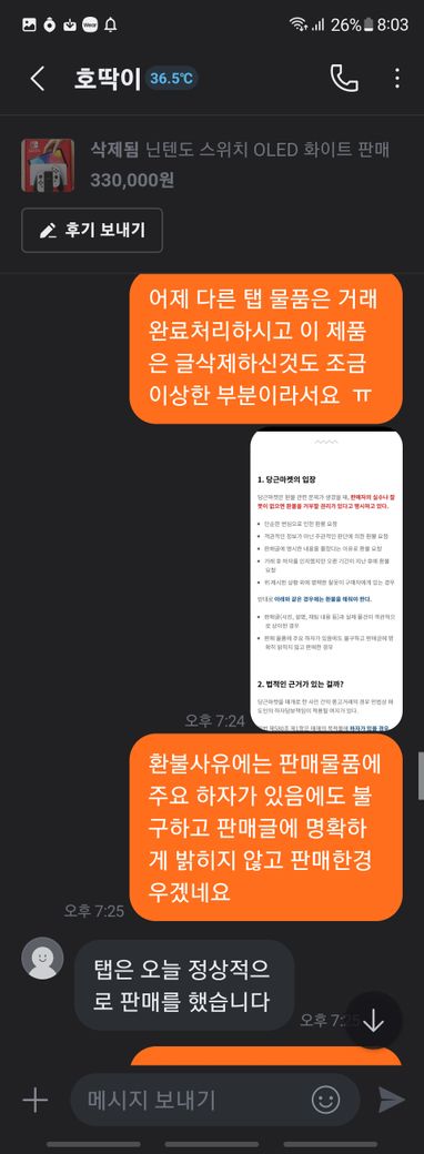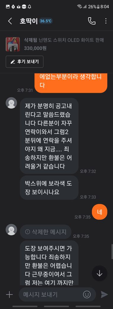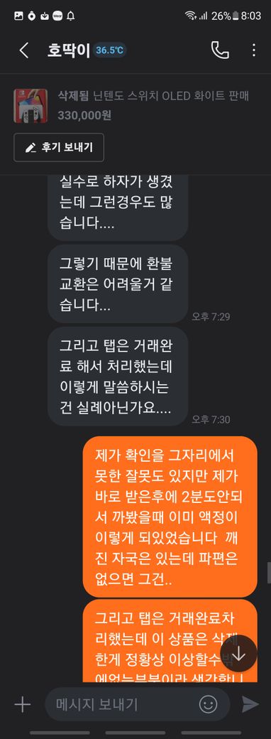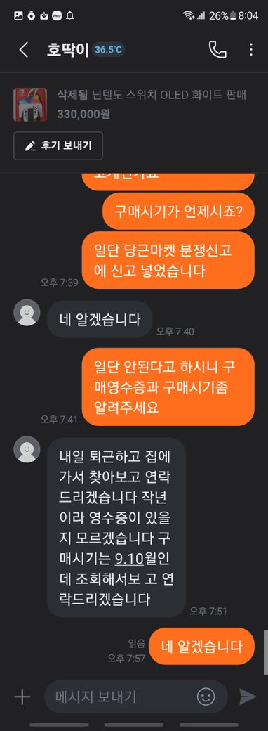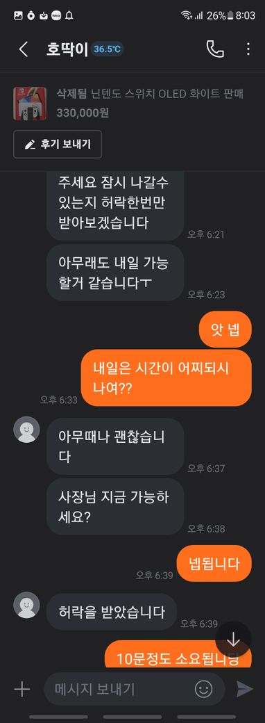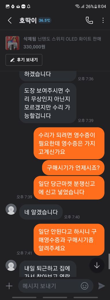 닌텐도 스위치 풀박스와 칩 판매 글을 본 후 거래를 했습니다