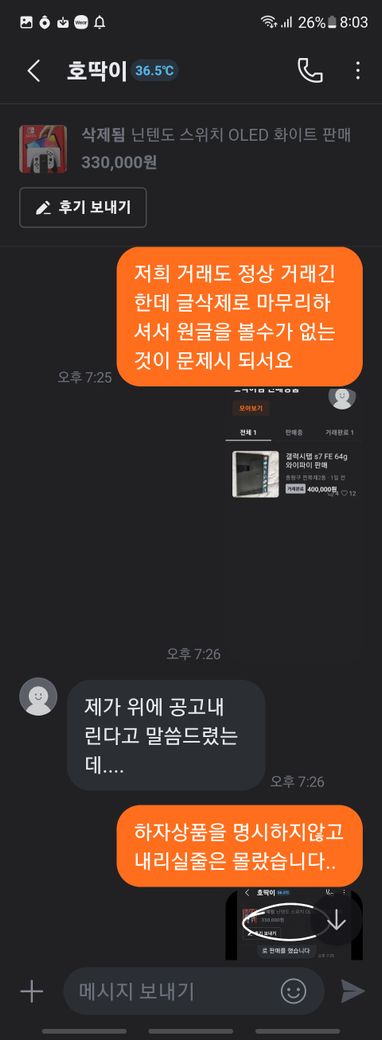 차를 타고 출발 하면서 당근채팅으로 대화를 하는데 판매자가 (저와 약속을 잡았으니) 공고문 내리겠습니다 하며 판매글을 삭제했습니다