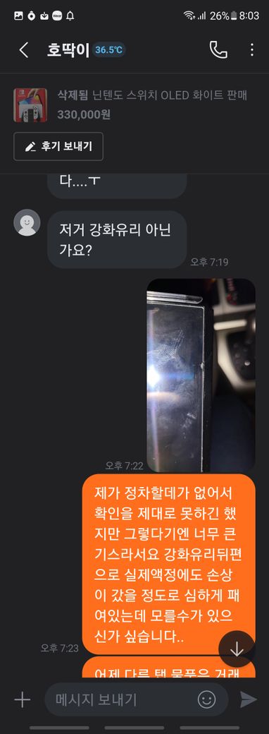 집에 가면서 신호 대기 중 박스를 개봉했는데 눈에 보이는 찍힘이 있어 분명 본 글에는 하자가 없다 했는데 어떻게 됀건가 하며 주행했고 도착 후 판매자에게 하자가 있어서 환불해줄 것을 요구했습니다