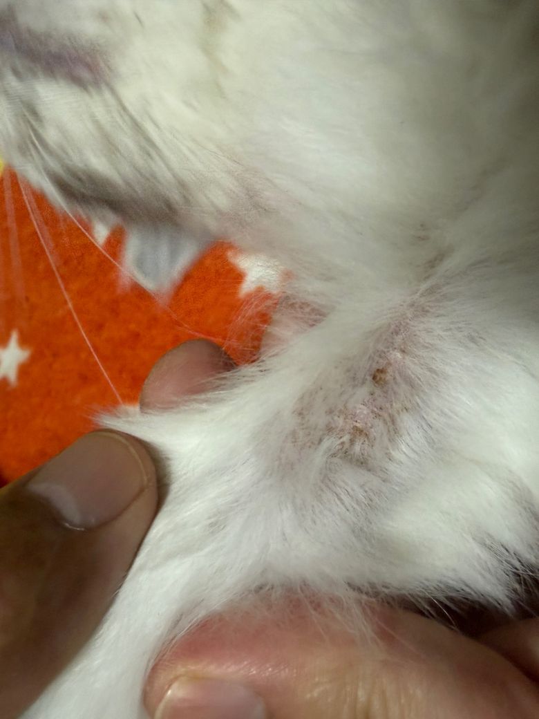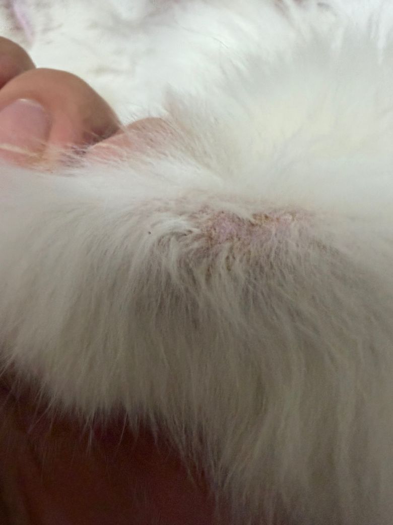 피부에뭔가 딱지같이잇고 털이빠져잇는데 뭘까요 오버그루밍때매 그런걸까요? 링웜이나 구런거같진않은대 이곳만그럿습니다ㅠㅠ