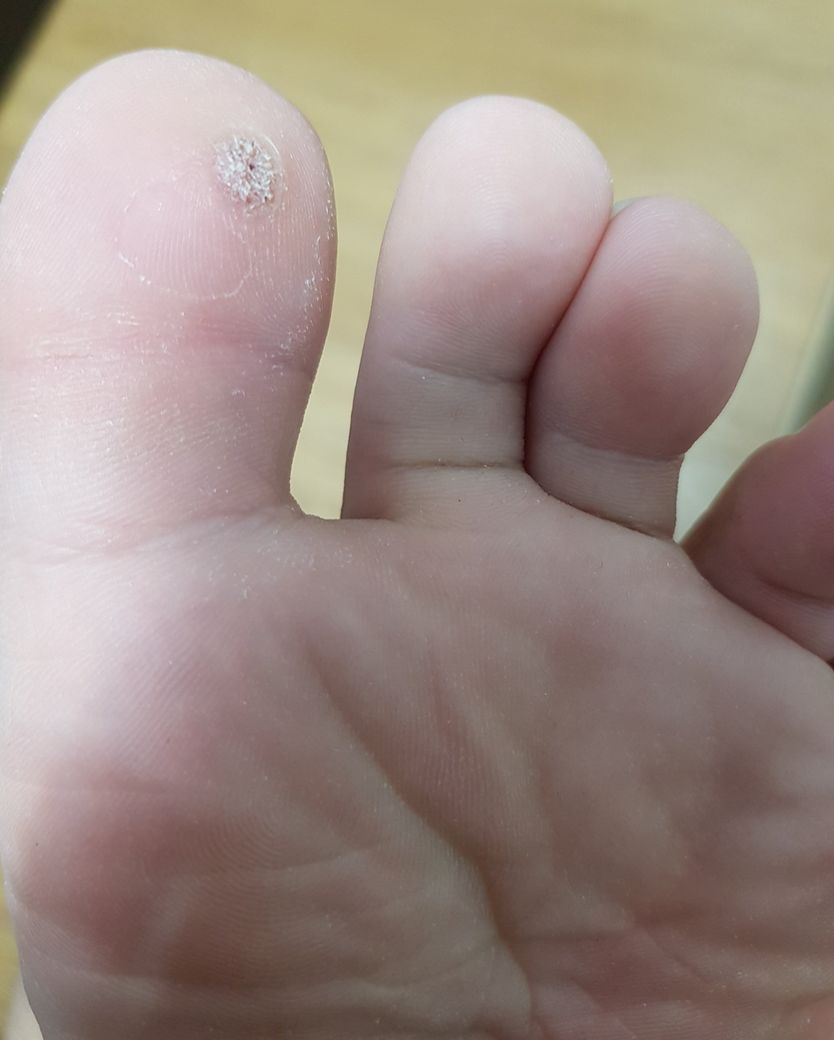 처음엔 티눈인 줄 알고 티눈밴드를 붙혔었는데 효과는 없었고 사람들이 말하는 티눈 통증이나 증상도 없었습니다. 그 뒤로 한 6개월간 방치했었는데 증상은 양쪽으로 누르거나 양말같은 게 닿을때 살짝아플때가 있고 물이 묻으면 각질같은게 번져 나옵니다. 무엇인지가 궁금하고 없앨려면 병원에 가야만 하는 지 궁금합니다. 감사합니다