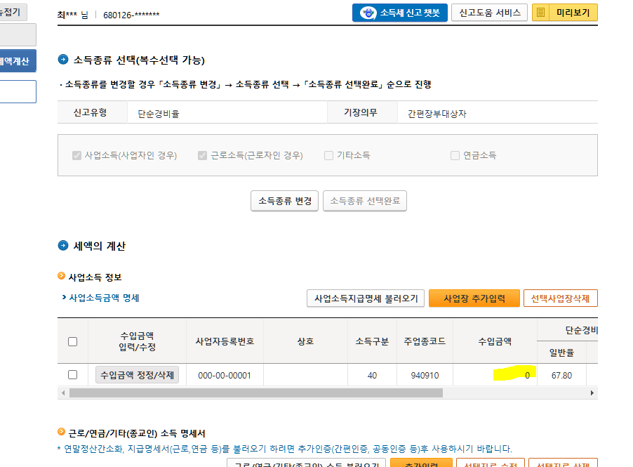 종합소득세 사업소득 없어진이유를알고싶습니다