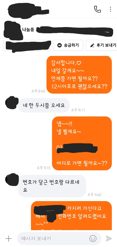 그래서 직접 가지러갈 사람의 연락처를 주고 어디로 가면 되냐고 물었는데,