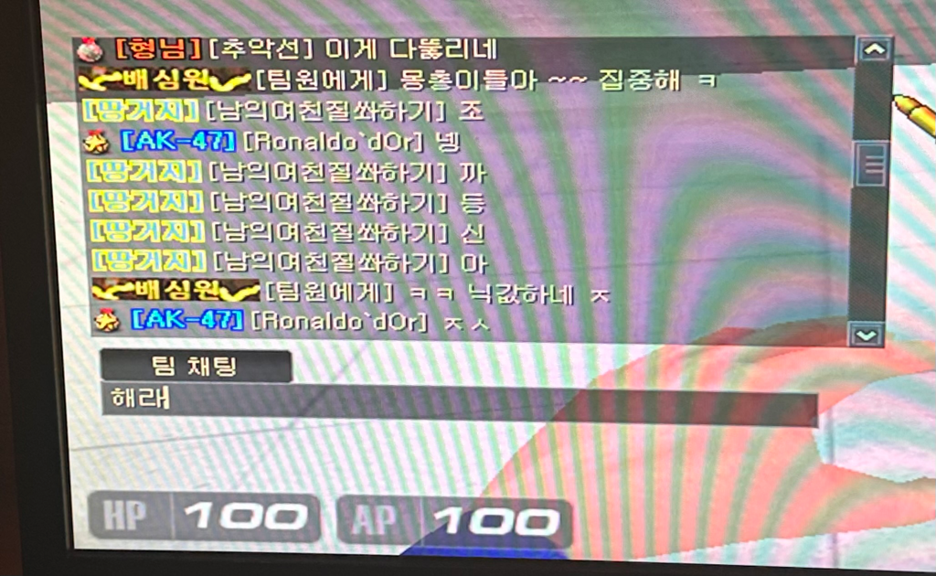 저는 이 사진 뒤에 '느금 마 내 밑 에 있 음' 채팅 하나씩 쳤습니다.