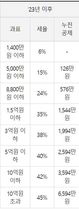 참고로 과세표준액이 10억원을 초과하면 45%의 세율을 적용합니다.