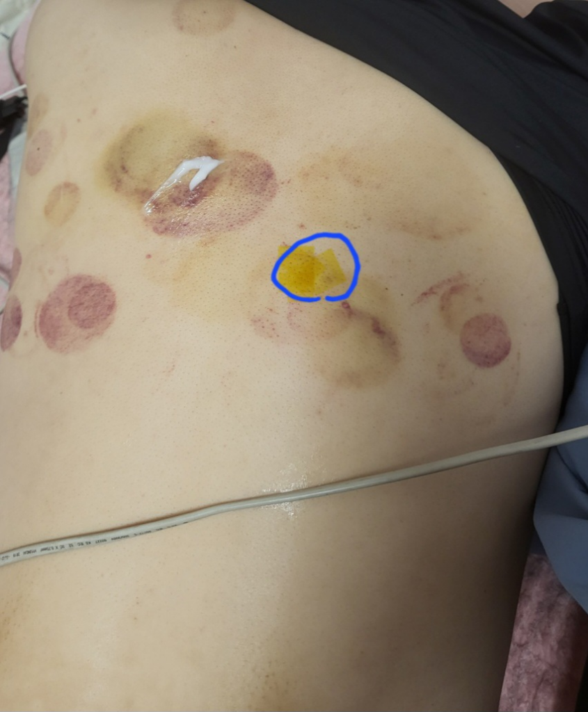 * 기간 중 한의원 2회 방문하여 등근육 침, 부항시술 병행