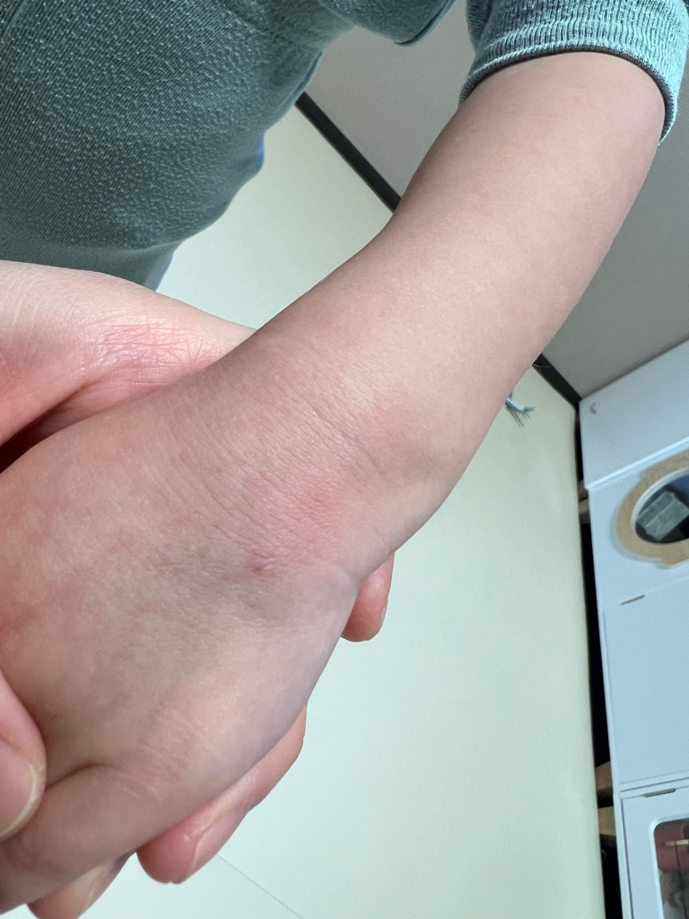 손에 약간의 염증이 발생한 것 같습니다. 사진상으로는 우선 크게 걱정할 필요는 아닌 것 같아 지켜보시면 될 것으로 보이나, 혹시 아이가 많이 아파하거나 발열, 발적이 더 심해지는 경우 균감염이나 염증의 확산이 있을 수 있으므로 병원에 가셔서 진료받아보시길 추천드립니다.