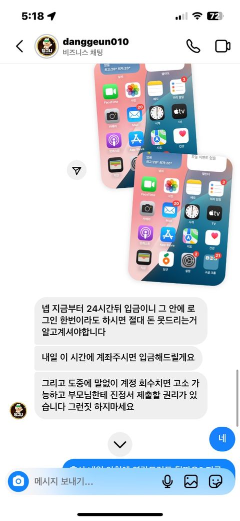 인스타에서 홍보용 으로 2일 빌리고 하루 쓰고 담날에 돈 준대서 화요일에 줬는데 오늘들어가니 사기치고 있었는데 제가 신고먹나요? 너무 무섭습니다 계좌를 2대로 다르게 남겼더라구요 이름도 다릅니다