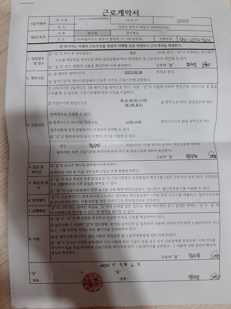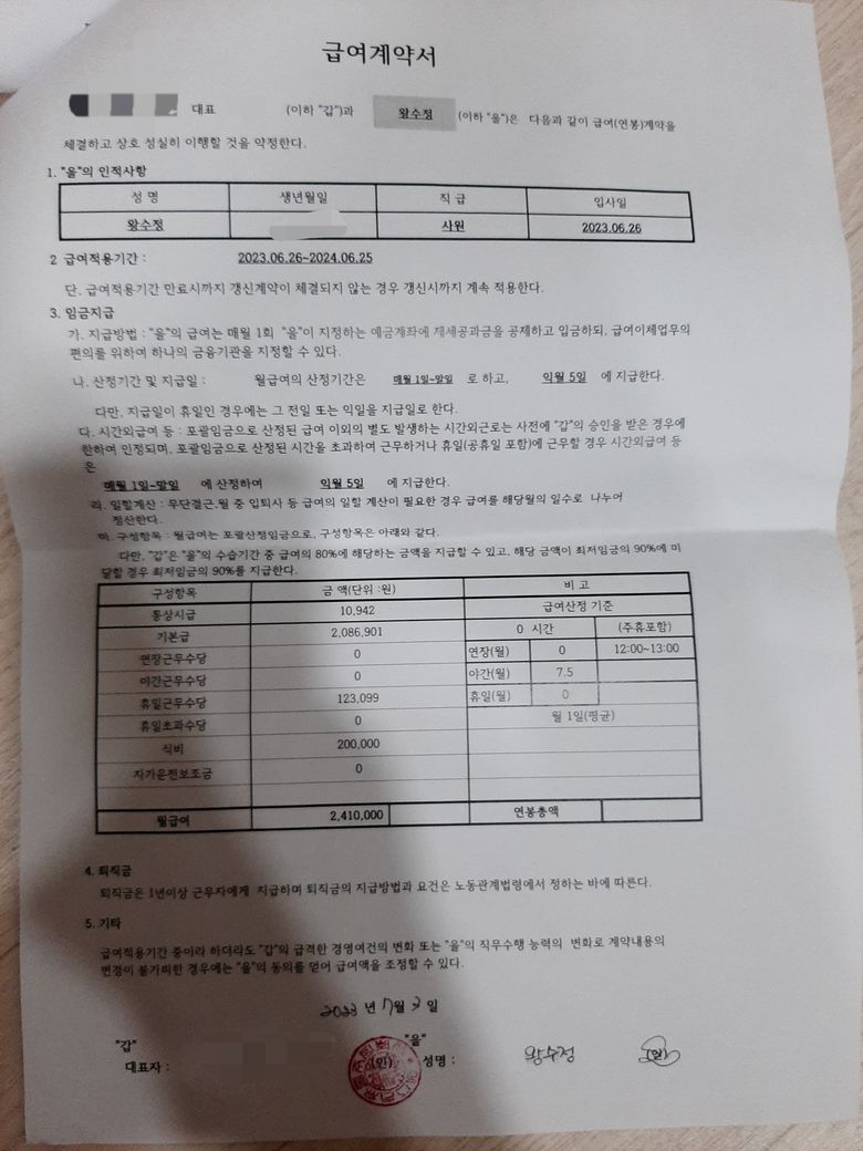 안녕하세요, 7월 초에 입사를 하고 근로 계약서를 썼는데요. 보시다시피 포괄근무제 입니다. 일을 다니다가 헷갈리는 부분이 생겼는데, 제가 물어볼 곳이 없어서 질문 드립니다...ㅠ