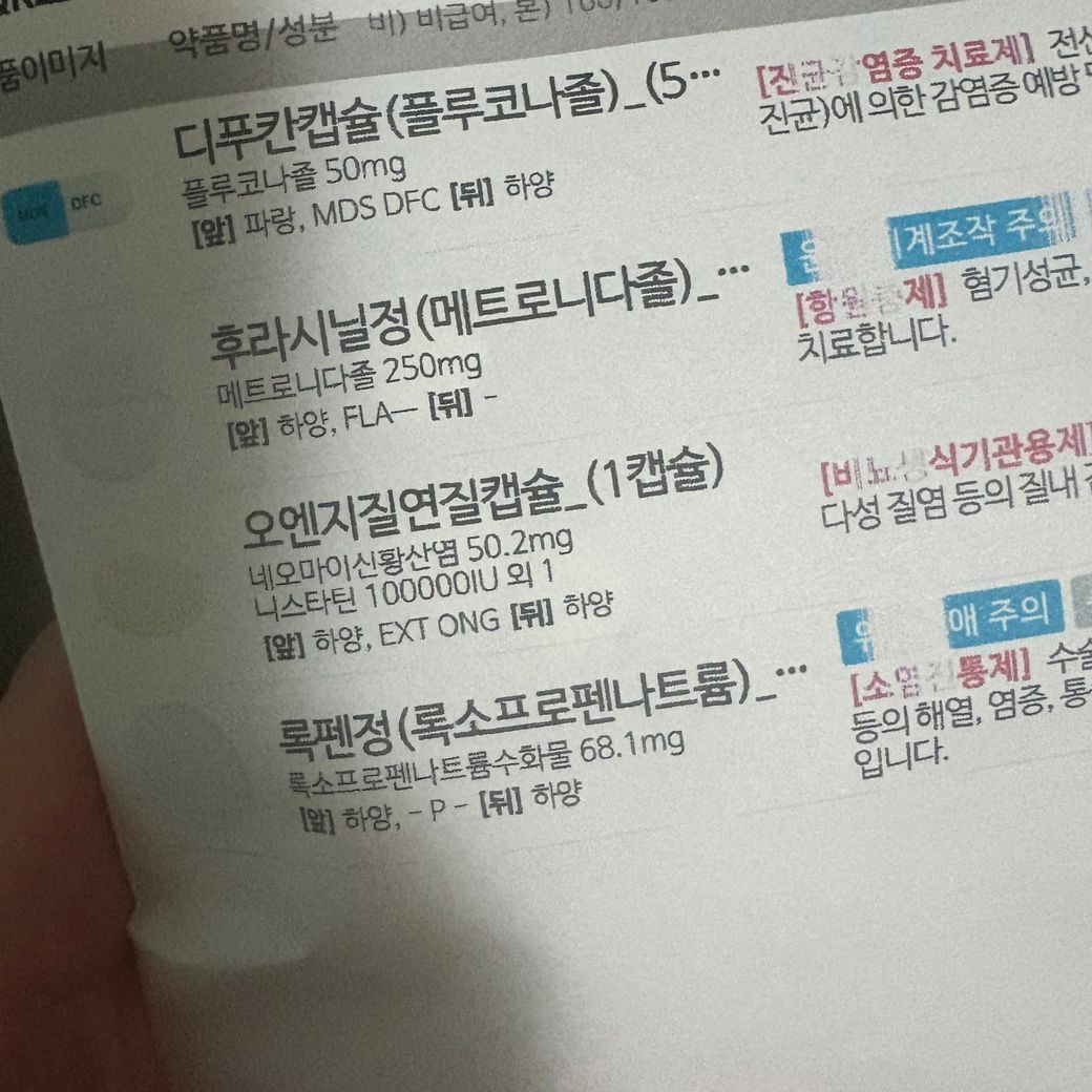 감가로 처방받은 약과 질염으로 처방받은 약에는 특별히 중복되는 부분이 없어 같이 복용이 가능합니다.