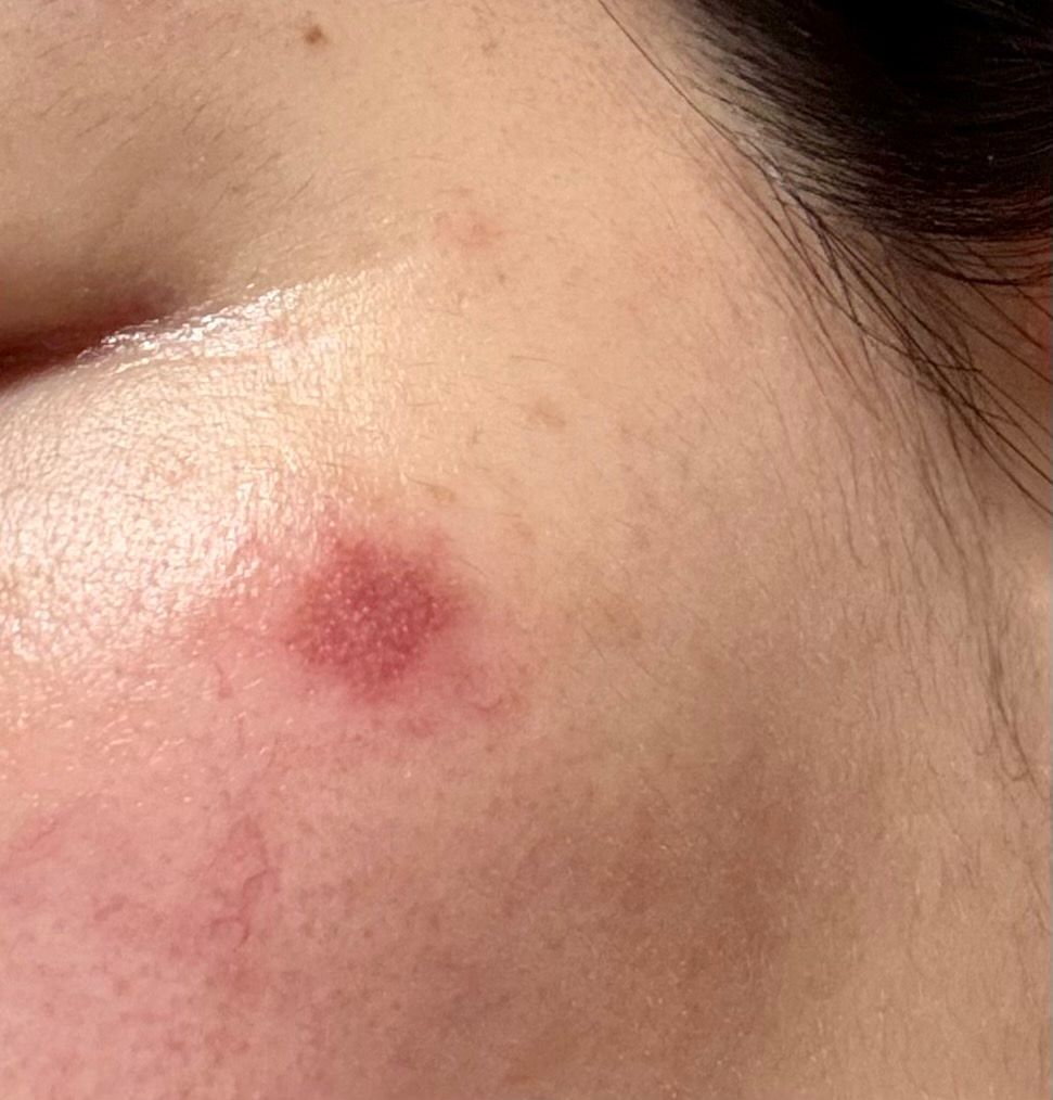 점 제거 부위의 홍반 역시 같은 기전으로 보이며 보통 시간이 지나면서 옅어집니다.