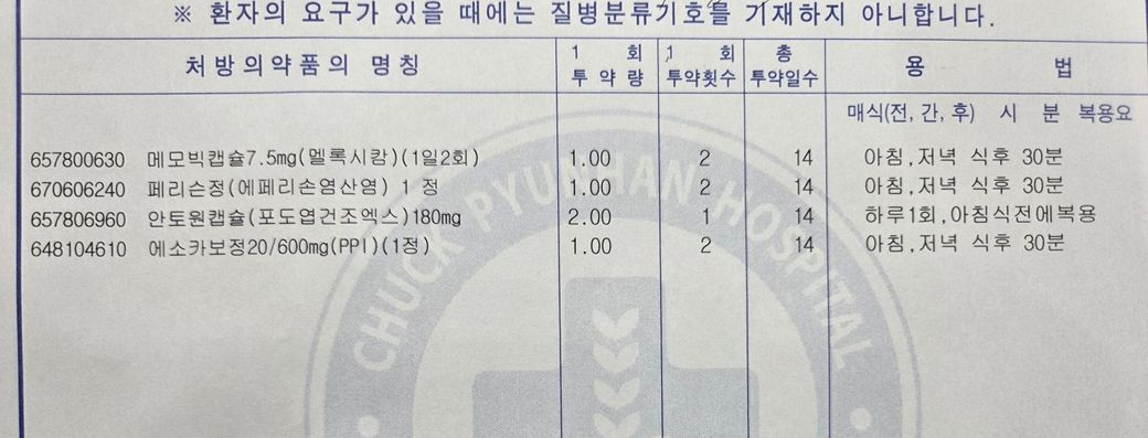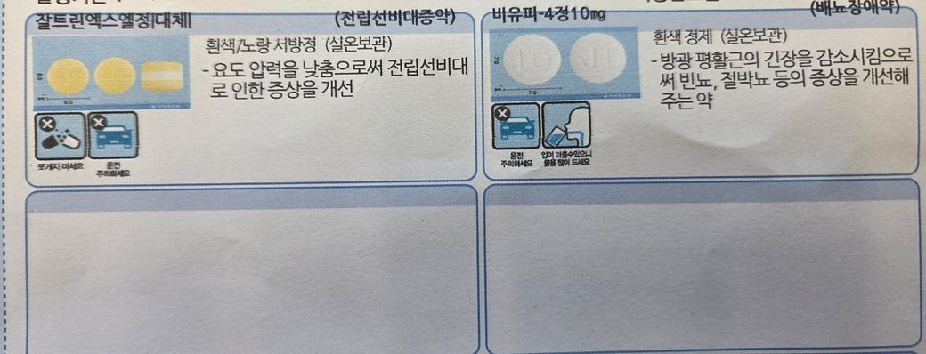 사진과 같이 목디스크약이랑 전립선염 약을 처방 받았는데