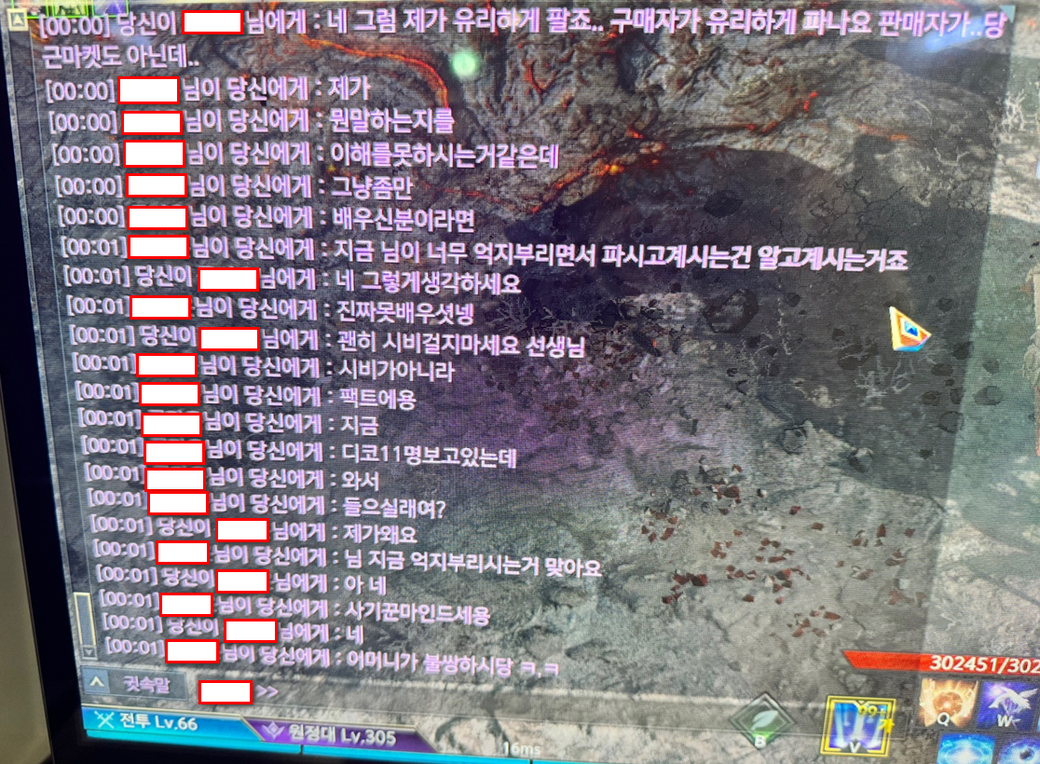 게임하다가 아이템을 판매하는일로 귓속말을 하던 도중 의견이 맞지않아 거래를 하지 않으려고 하던와중에 귓속말로 저런 모욕적인 언행을 들었습니