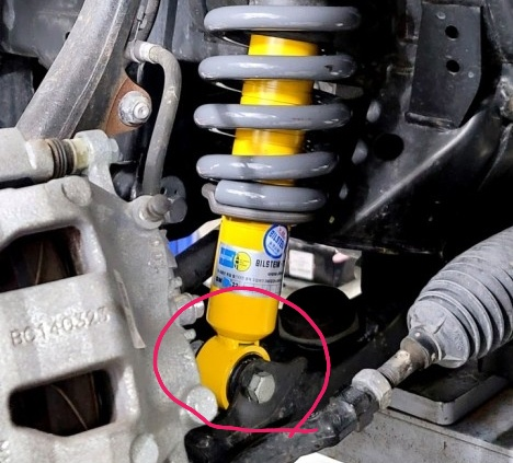 쇼바 아래 체결부위인 부싱가운데가 타공 되어 있어 나사를 관통해서 고정하자나요