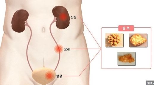요로 결석은 신장, 요관, 방광 등에 돌이 생기는 것으로 염분이 많은 식사, 요로감염, 요관의 기형 등이 원인 되어 생깁니다.