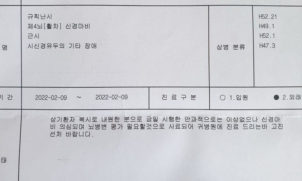 복시가 있어 근처 안과로 가 검진한 기록인데 해당 소견이나 앞으로 진행할 검사들로 신체검사 급수가 재조정될 수 있을지 궁금합니다 감사합니다 !