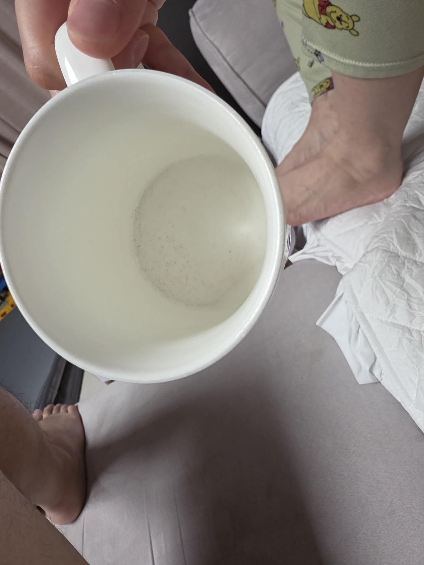사진을 보면 작은 점이나 얼룩이 보이는데 이는 대부분 곰팡이 또는 세제 찌꺼기, 미세한 떄일 가능성이 높습니다. 오래 사용한 컵이나 제대로 건조되지 않은 컵에서 생길 수 있습니다. 위생상 안전을 위해 곰팡이가 의심되면 새 컵으로 교페하는 것이 좋습니다.