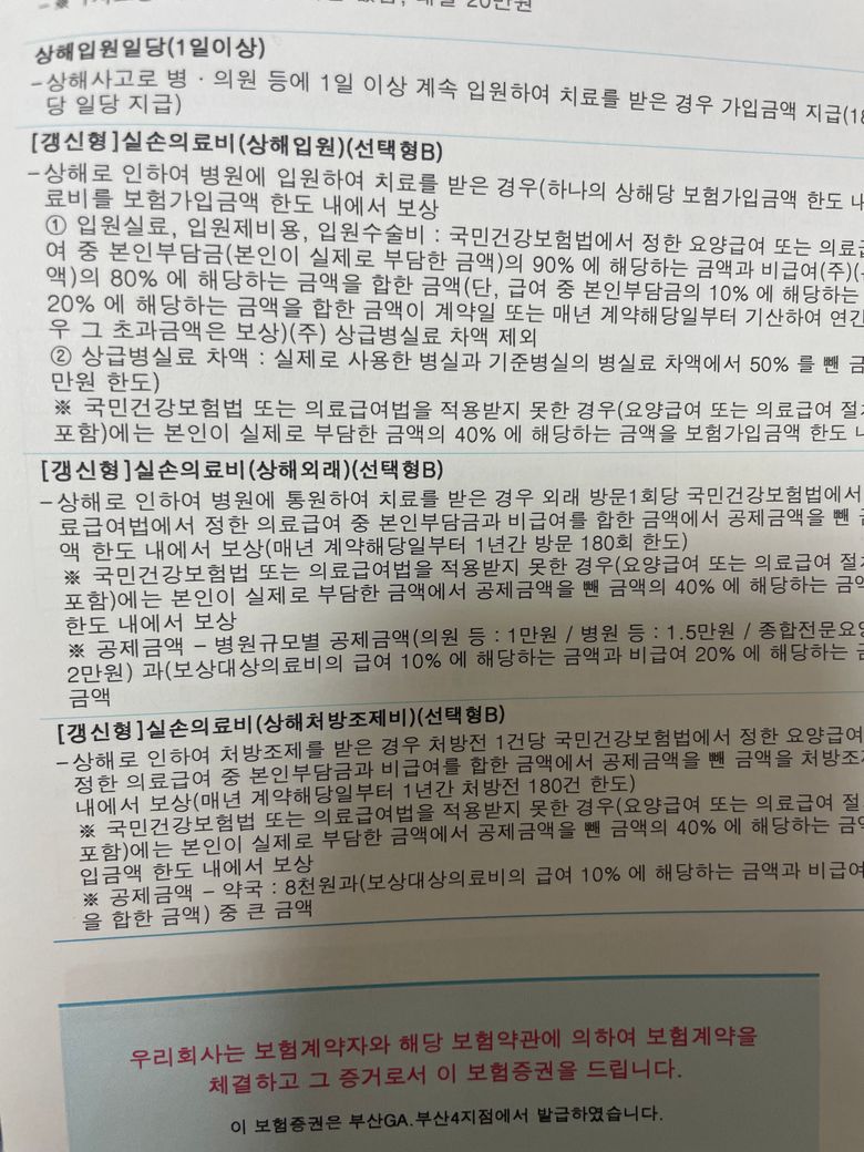 예전에 가입한 실손보험 맞습니다 상해로 병원다니면서 약 처방받아서 드시면 약값을 보장하는것입니다 잘 읽어 보시면 보장내용을 알 수 있습니다