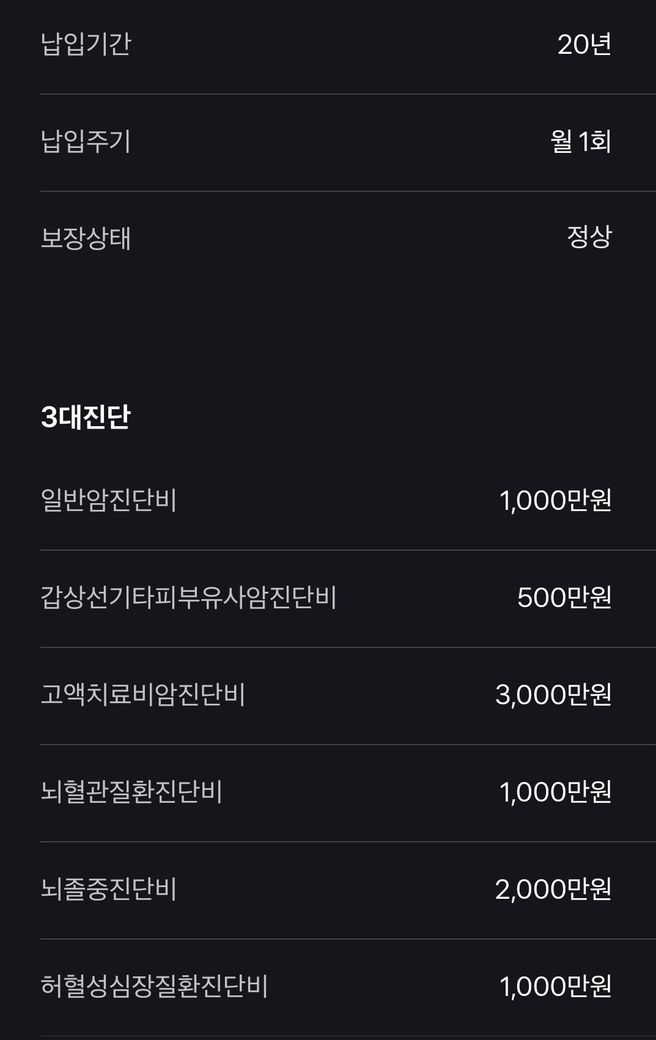 3대진단비쪽은 보장 범위가 넓은 일반암진단비(유사암 제외)는 1,000만원으로 다소 낮습니다