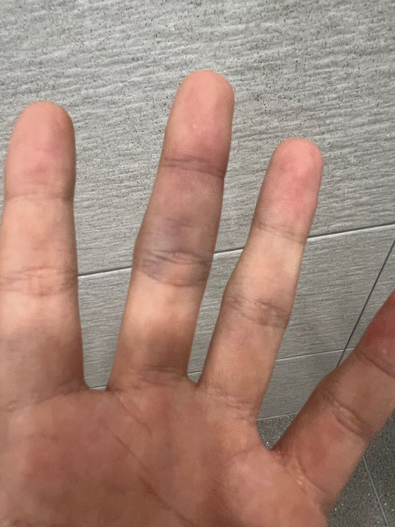 강한 압력이나 반복적인 마찰로 손가락 실핏줄이 터지면서 멍처럼 부풀수 있습니다. 밀대질 중 손가락에 순간적으로 과한 힘이 가해졌을 가능성이 큽니다. 크게 걱정할 필요는 없지만 붓기나 통증이 지속되면 정형외과 진료가 필요할수 있습니다!