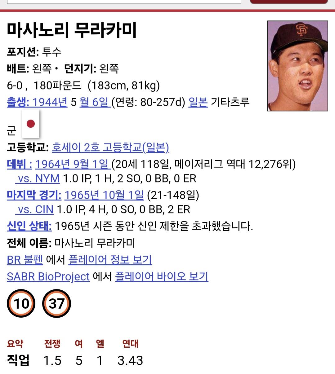 무사카미 마사노리로 1964~65년까지 SF 자이언츠에서 활약한 선수 입니다