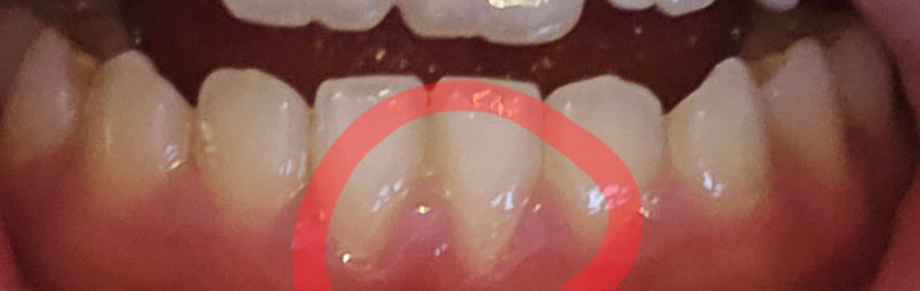 현재 잇몸퇴축도 조금 진행되었고 색상이나 부종으로 보건데 치은염이 있어 보입니다. 또한 사진상 치아에 전반적으로 치태가 끼어있는것 같은데 이런 경우 스케일링을 받으면 증상이 완화되는 경우가 많이 있습니다. 치과에서 스케일링을 한번 받아보시고 증상을 지켜보는 것도 좋겠습니다