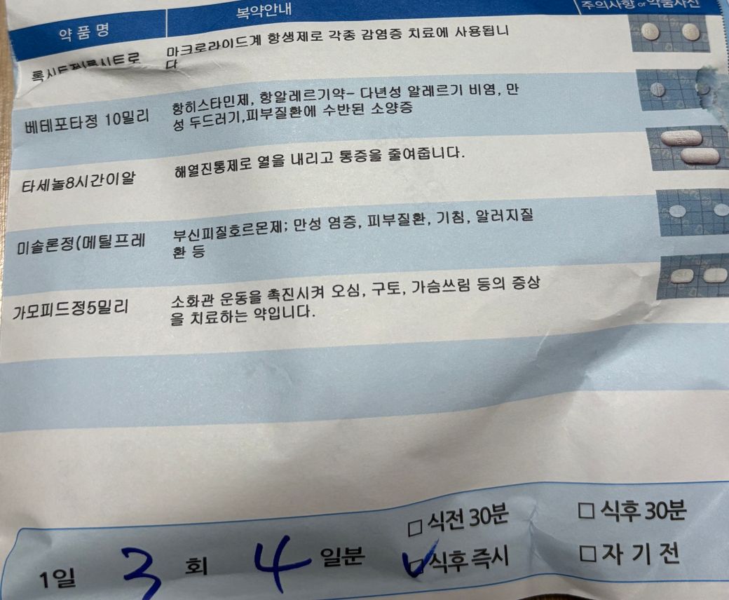 항생제는 4일을 처방받은 대로 모두 끝까지 복용하셔야 항생제 내성을 예방할 수 있습니다. 항생제는 모두 복용하는 것을 추천드립니다.