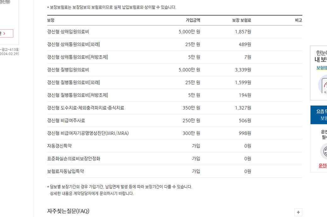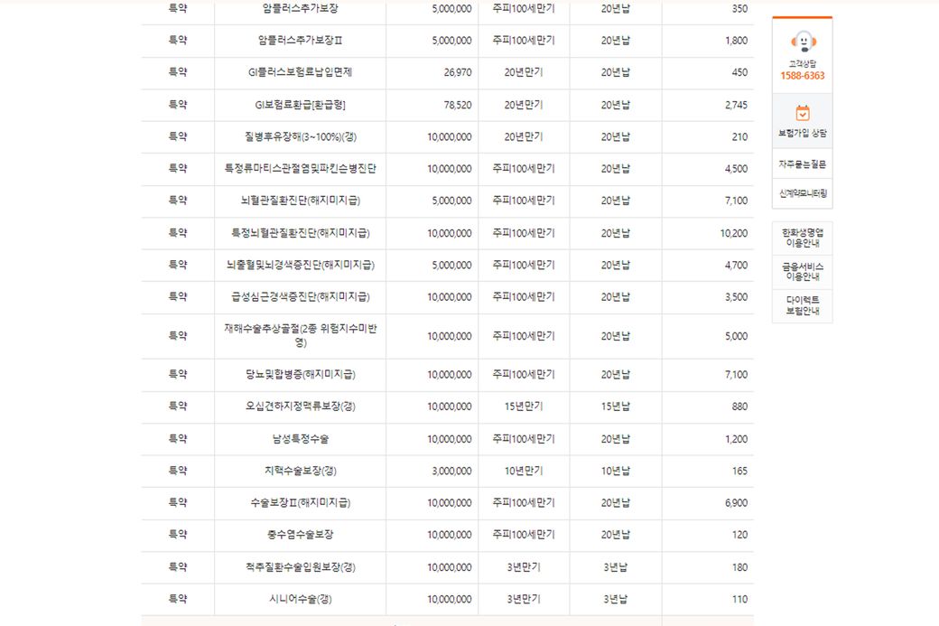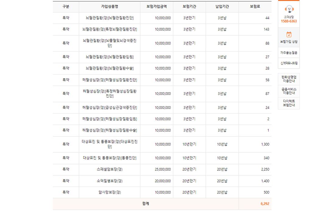 다만, 핵심 담보로만 설정하지 않고, 그냥 모든 특약 다 때려넣은 견적서입니다.