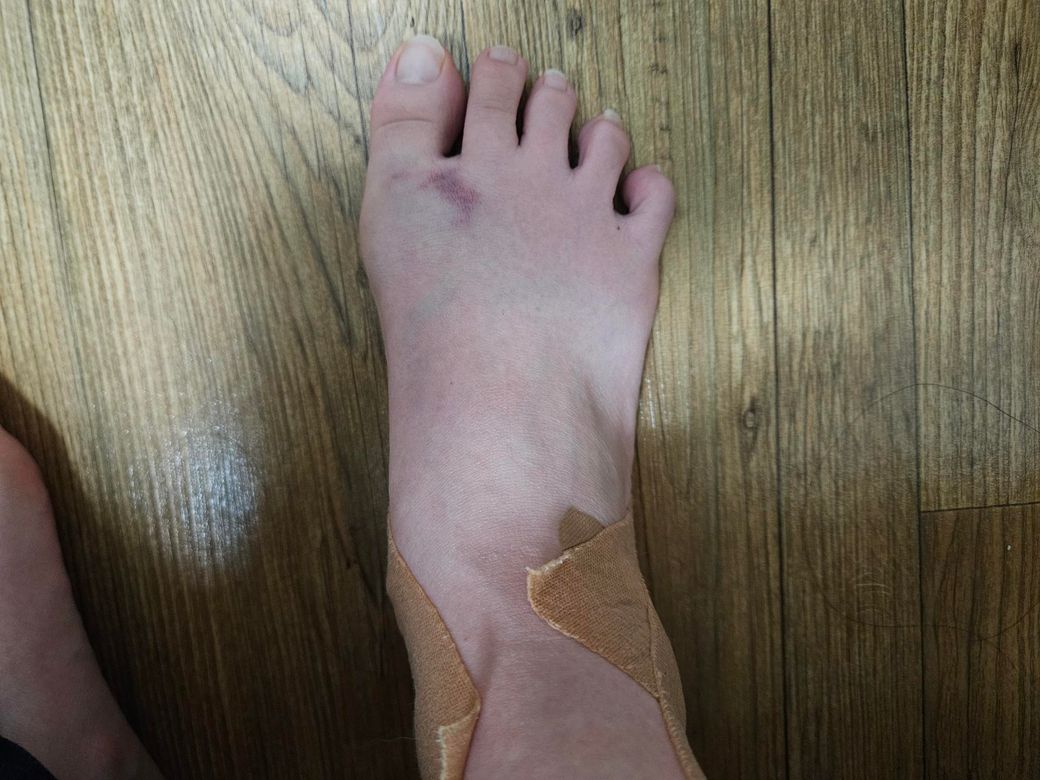 발목 접지러서 인대다쳤는데 발등에 보라색으로 멍이 생겼어요