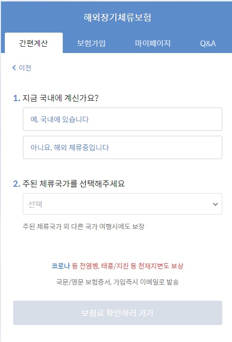 네이버에 마이뱅크를 검색하시면 해외장기체류보험을 다이렉트로 가입이 가능하십니다.