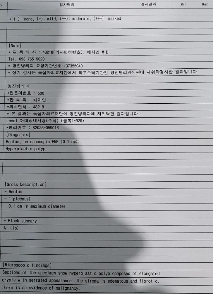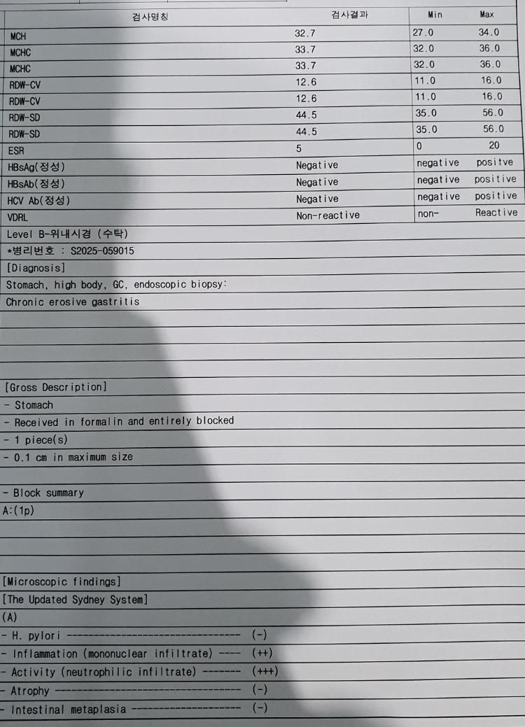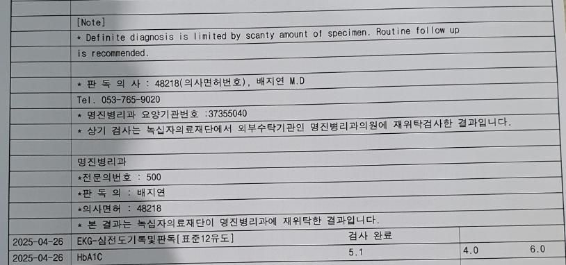조직검사 및 혈액검사 결과 해석 부탁드립니다.