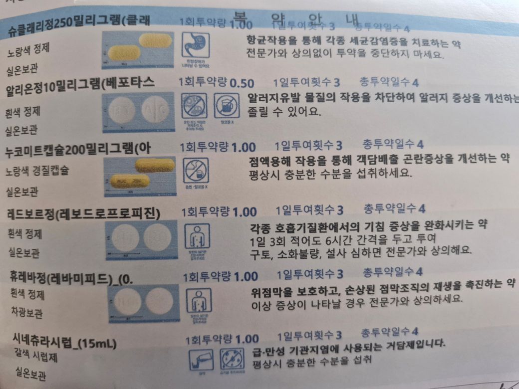 어머니가 이비인후과 처방을 받으셔서 식사 하신 후 처방약을 꼬박꼬박 하루에 세차례 드시는데요