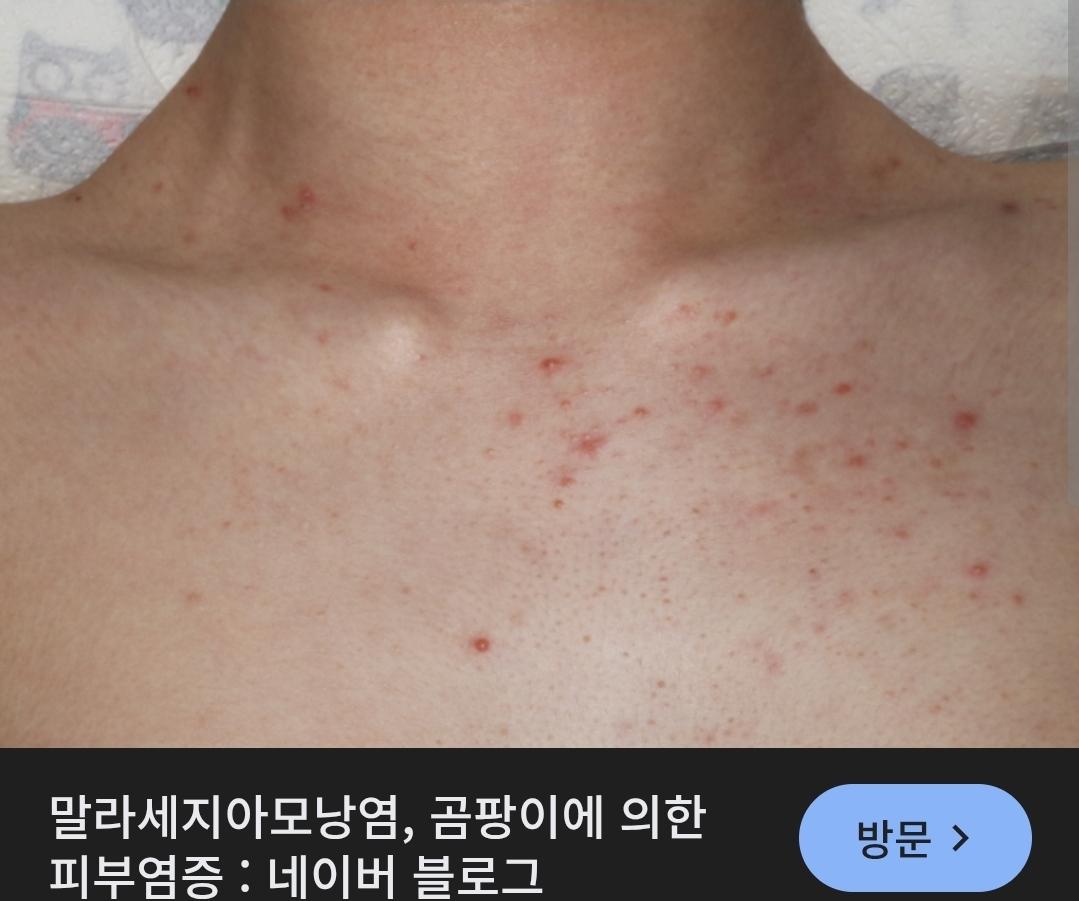 사진과 경과를 종합하면 단순 각질 문제보다는 모낭염 계열 가능성이 높습니다. 특히 가슴 아래 갈비뼈 부위는 땀·마찰·속옷 압박이 반복되는 곳이라 [ 세균성 모낭염 ]이나 [ 말라세지아 모낭염 ]이 만성적으로 지속되기 쉽습니다. 화농성처럼 아프고 짜지며 자국이 남는 점도 여드름성 모낭염 양상과 맞습니다.