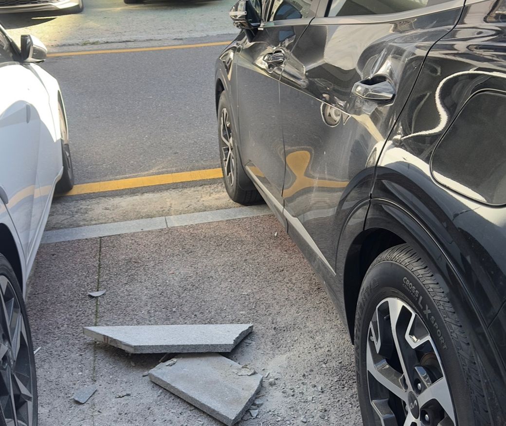 다세대주택 주차장에서 건물외벽 대리석이 떨어져 차량이 파손되었습니다